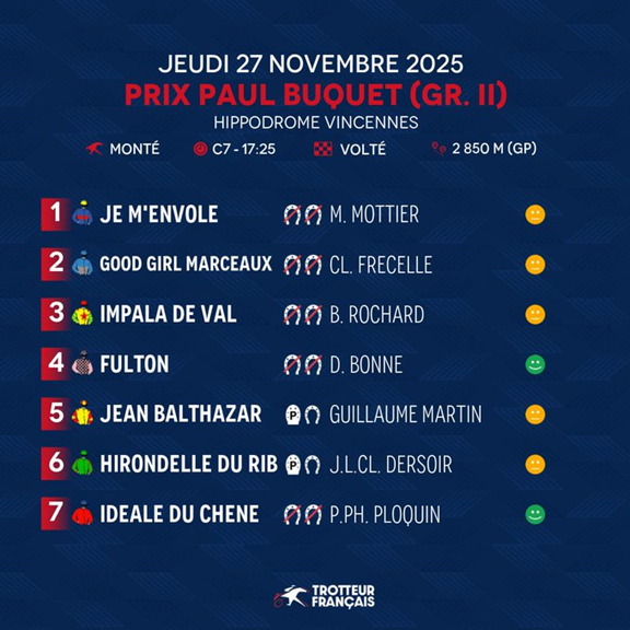 Kapabel outsider: 1 MATFABEN D’ENJE är obesegrad felfri efter två segrar på fem starter i karriären. Han segrade enkelt som favorit i comebacken i Cabourg 25/10. När tränare Souloy vänder blicken mot Vincennes, är det förmodligen för att han tycker att hästen är redo att möta tuffare motstånd.